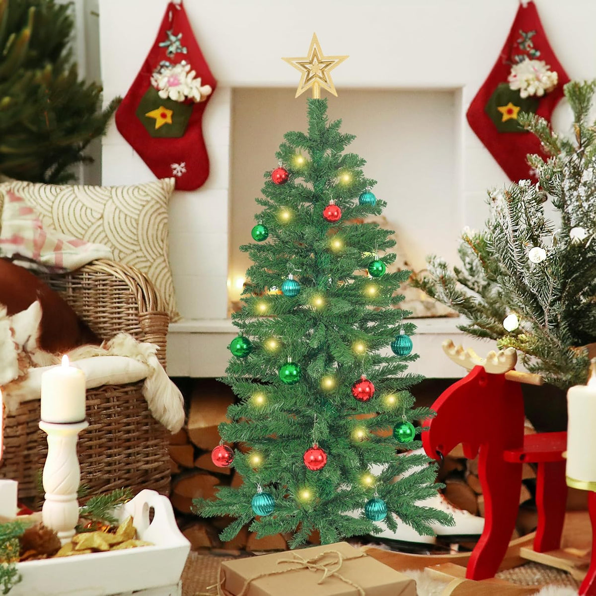 With Ornaments: This 3ft Christmas tree is perfect for adding a special touch to your Christmas decorations. Complete with Christmas balls and stars, this Christmas tree will make your Christmas stand out