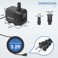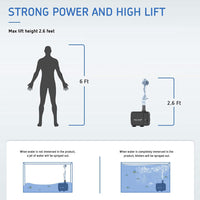 Versatile Uses: The pump comes with 3 nozzles(0.75/0.87/1inch), allowing you to choose from a variety of water spray patterns. 5.9ft power cord offers convenient installation by your needs in aquariums, pond fountains, hydroponic systems, etc.