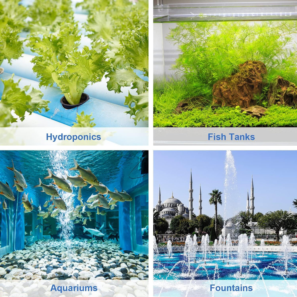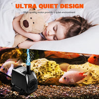 Quiet and Long-lasting: Our fish tank pump features an ultra-quiet motor, offering a quiet environment for your life. Meanwhile, the motor is durable and corrosion-resistant, ensuring a reliable performance.
