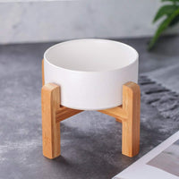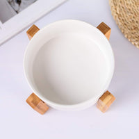 Ceramic Elevated Raised Cat Bowl with Wood Stand No Spill Pet Food Water Feeder