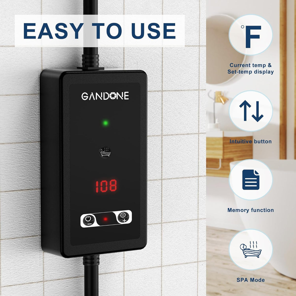 ADJUSTABLE WATER TEMPERATURE: You can set the predetermined temperature of the water by using the buttons on the control box. The operation is very simple and easy to understand, safe and reliable