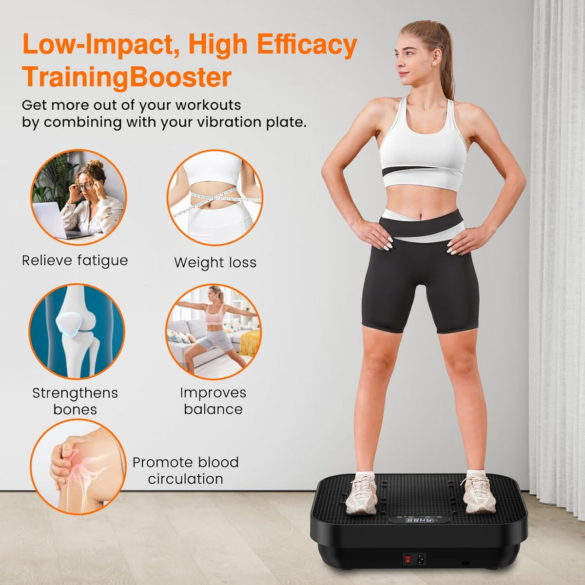 Reliable Guarantee: Its quiet motor and anti-noise suction cups deliver a peaceful experience, making it perfect for home use without disturbing others.The bottom four anti-slip suction cups ensure stability of the vibration plate, preventing slipping and reducing exercise noise, ensuring minimal disturbance during workouts.Its maximum load-bearing capacity is 330 pounds