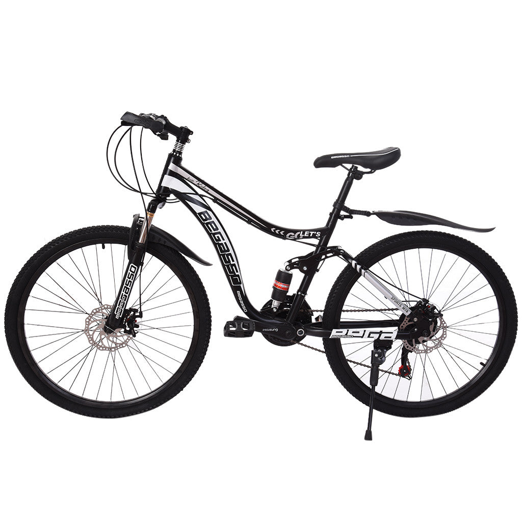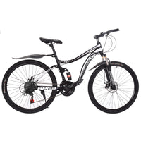 Bicycle with high-carbon steel mountain bike double suspension, 21-speed gear.