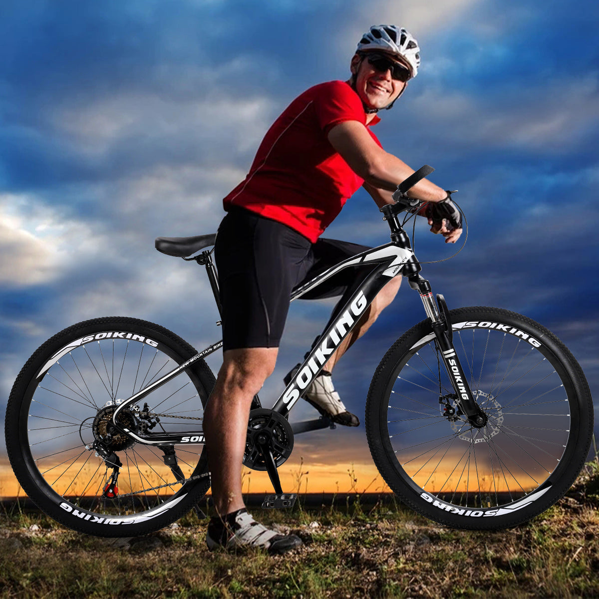 1.Bicycle with high-carbon steel mountain bike double suspension, 21-speed gear.