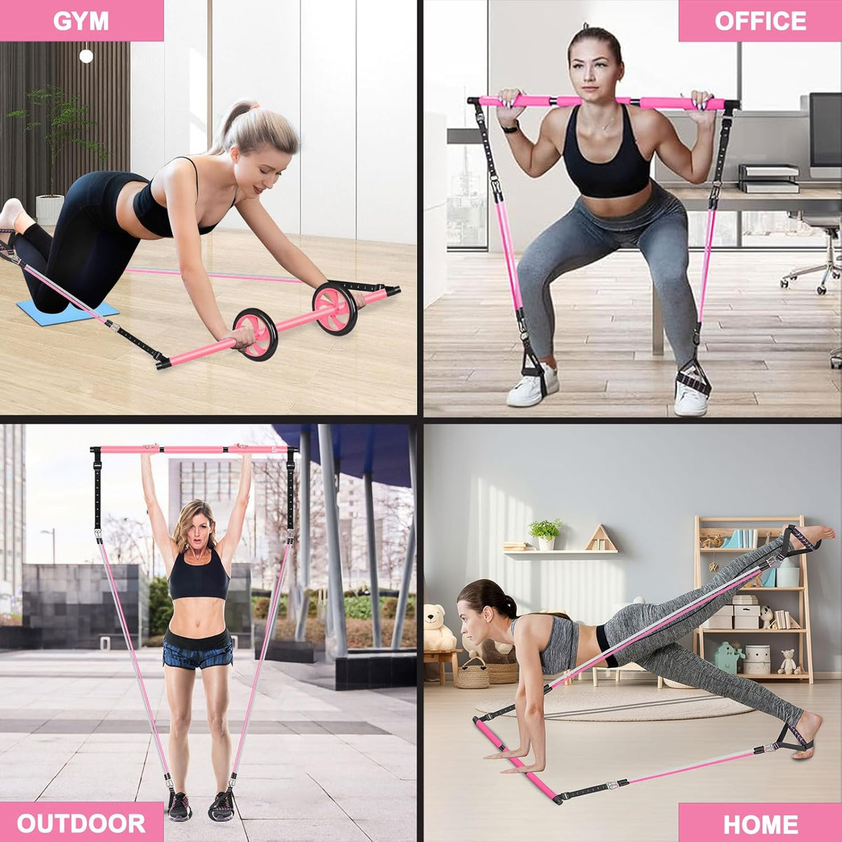 Pilates Equipment Exercise Bar with Ab Roller for Abs Workout