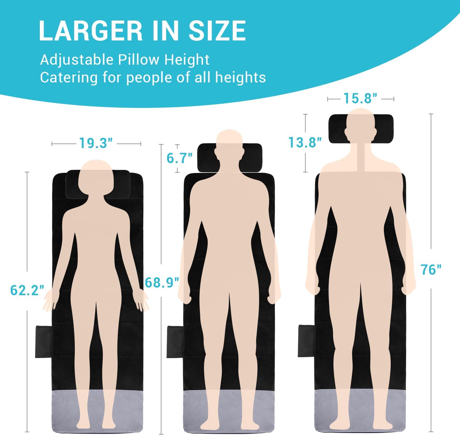 When to Use a Full Body-style Massage Heating Pad: Most people say they would like to use it for a meditation in the morning after waking up, a midday break from the screen time or relaxation at night before bed.