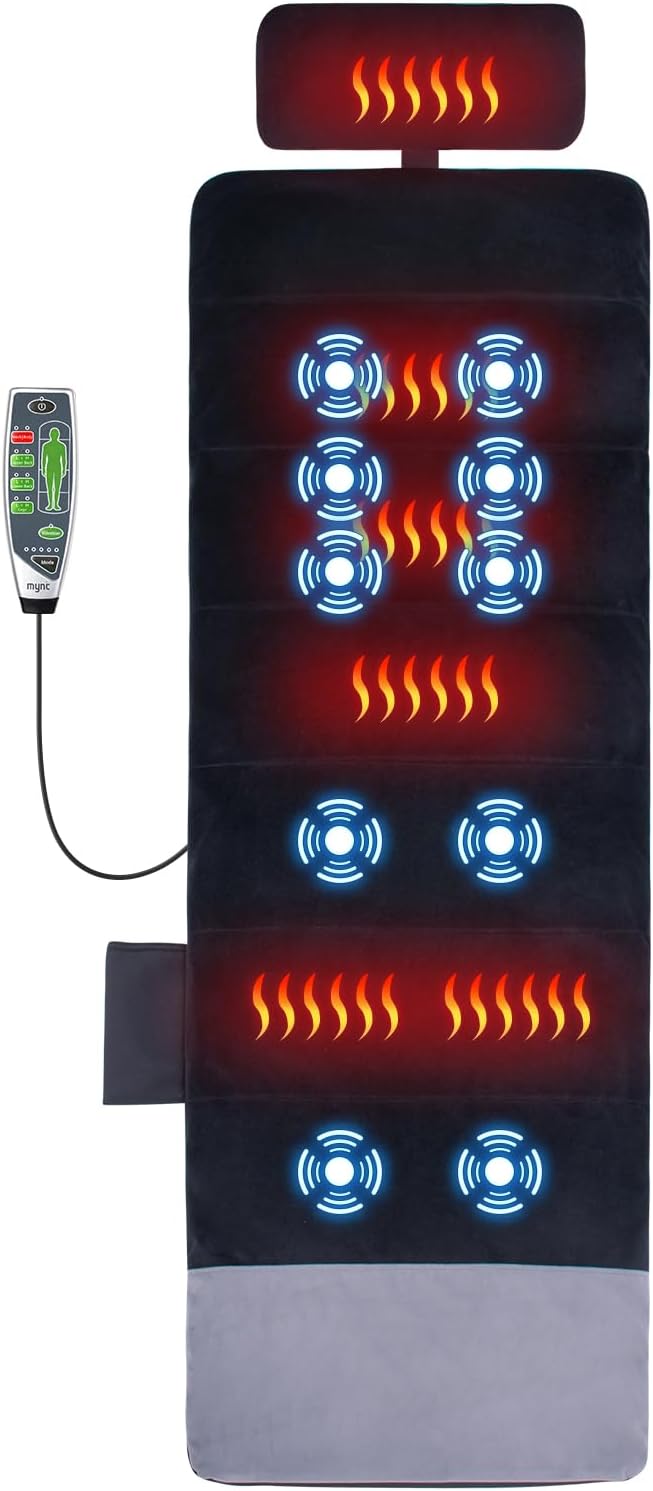 Full Body Massage Mat Features: This unit from Mynt is a full body-style vibration massager. It features ten vibrating motors that do the work of gently to intensely massaging your full body, providing a soothing sensation and ultimate relaxation. This is in contrast to Shiatsu massage, which functions from rollers. This massage pad is designed with two massage intensities, five vibration programs, and an optional heat setting for a totally unwind experience at home.