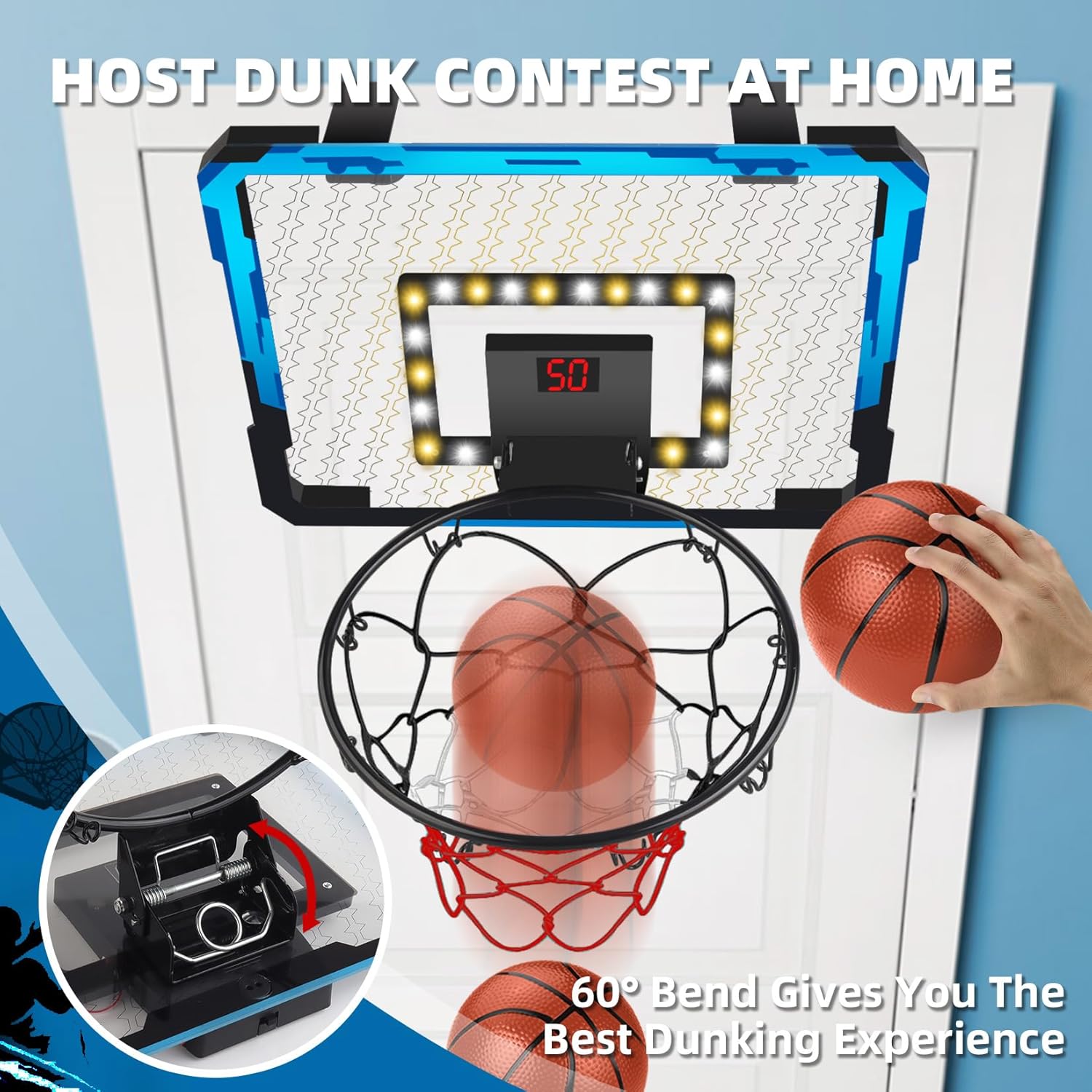 Special Feature: Electronic Scoreboard, LED Lights, Realistic Dunking Experience