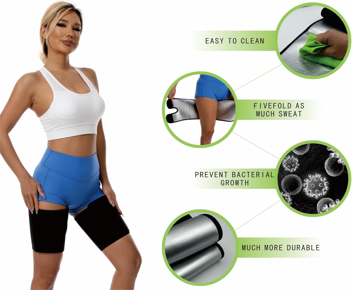 Our Dokelovy THIGH BANDS FOR WORKOUT are not just about exercise; they're a step towards a healthier you. These thigh sweat bands belts are perfect for running, fitness leggings, or as a SWEAT BELT FOR WOMEN, ensuring you stay comfortable and supported, whether you're at the gym or at home