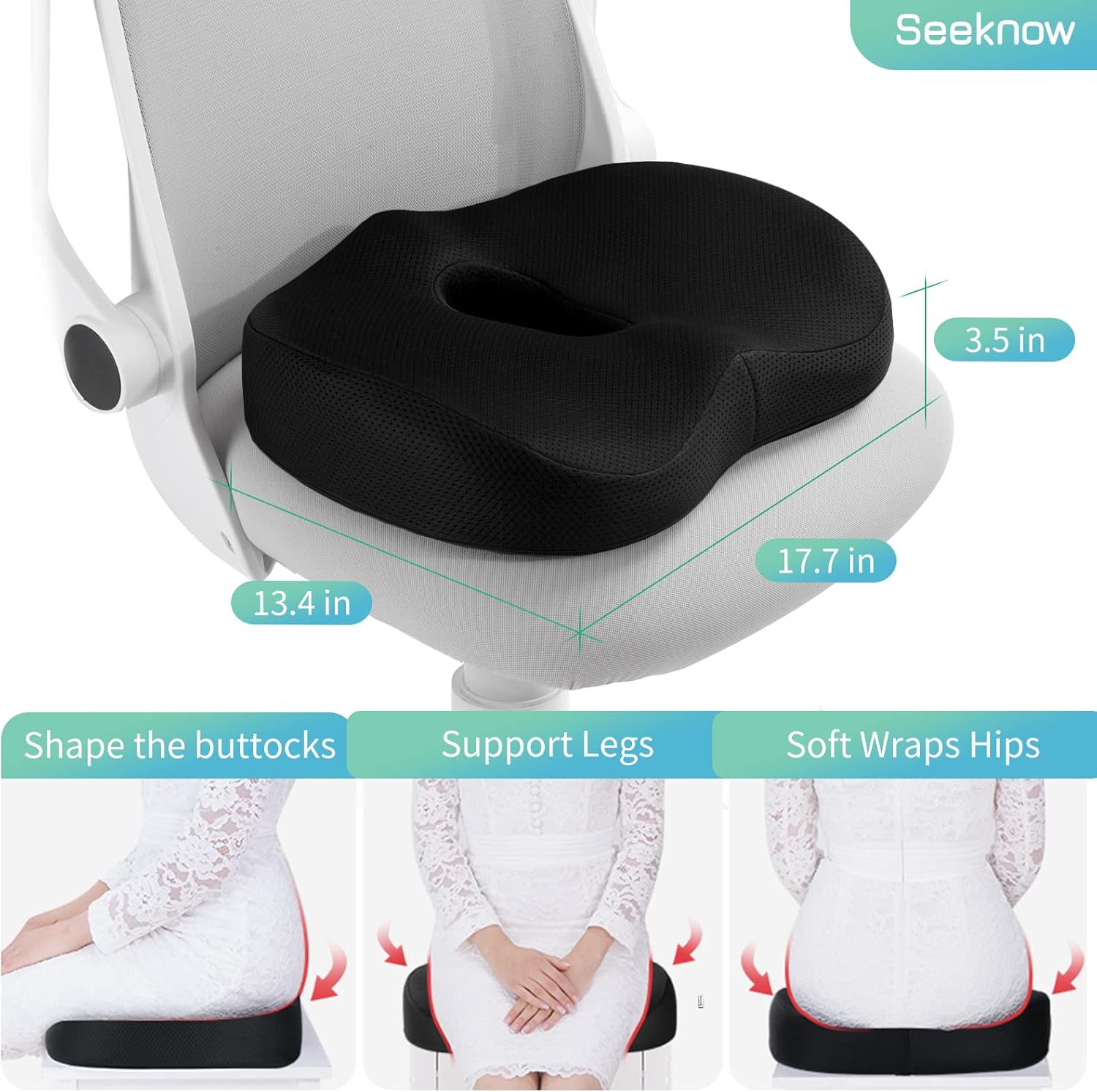 Fits your body perfectly: our seat cushions for office chairs have a new ergonomic design, the seat cushion for tailbone pain relief is filled with memory foam with a temperature-sensing function, and the chair pillow can return to its original shape after each use, The cushion for office chair is guaranteed to fit your skin like it's tailored every time you use it, so you can get through the day energized.